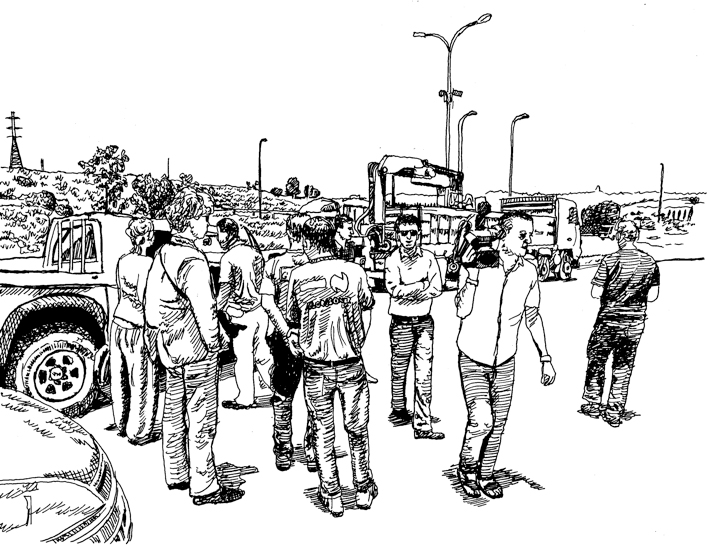 Michael Baers zeigt seine Plakatarbeiten Decolonizing Architecture: Four Human Landscapes (Entkolonialisierung der Architektur: Vier menschliche Landschaften) und A Beyond that Doesn't Get You Anywhere (Ein Jenseits, das einen nirgendwohin bringt) sowie sein Werk An Oral History of Picasso in Palestine (Eine mündliche Geschichte von Picasso in Palästina) , einen Comicroman, der sich mit einem 2011 stattgefundenen Ereignis beschäftigt: Picassos Gemälde Buste de Femme aus dem Jahr 1943, das dem Van Abbemuseum in Eindhoven in den Niederlanden gehört, reiste nach Palästina in das Westjordanland, wo es für kurze Zeit in einem improvisierten Ausstellungsraum der Internationalen Kunstakademie Palästina gezeigt wurde. Indem sich Baers' künstlerisches Forschungsprojekt mit den Einzelheiten dieses Ereignisses befasst, erkundet und illustriert es Methoden der Kontrolle, die auf größerer Stufenleiter in der Besetzung Palästinas zum Einsatz kommen.