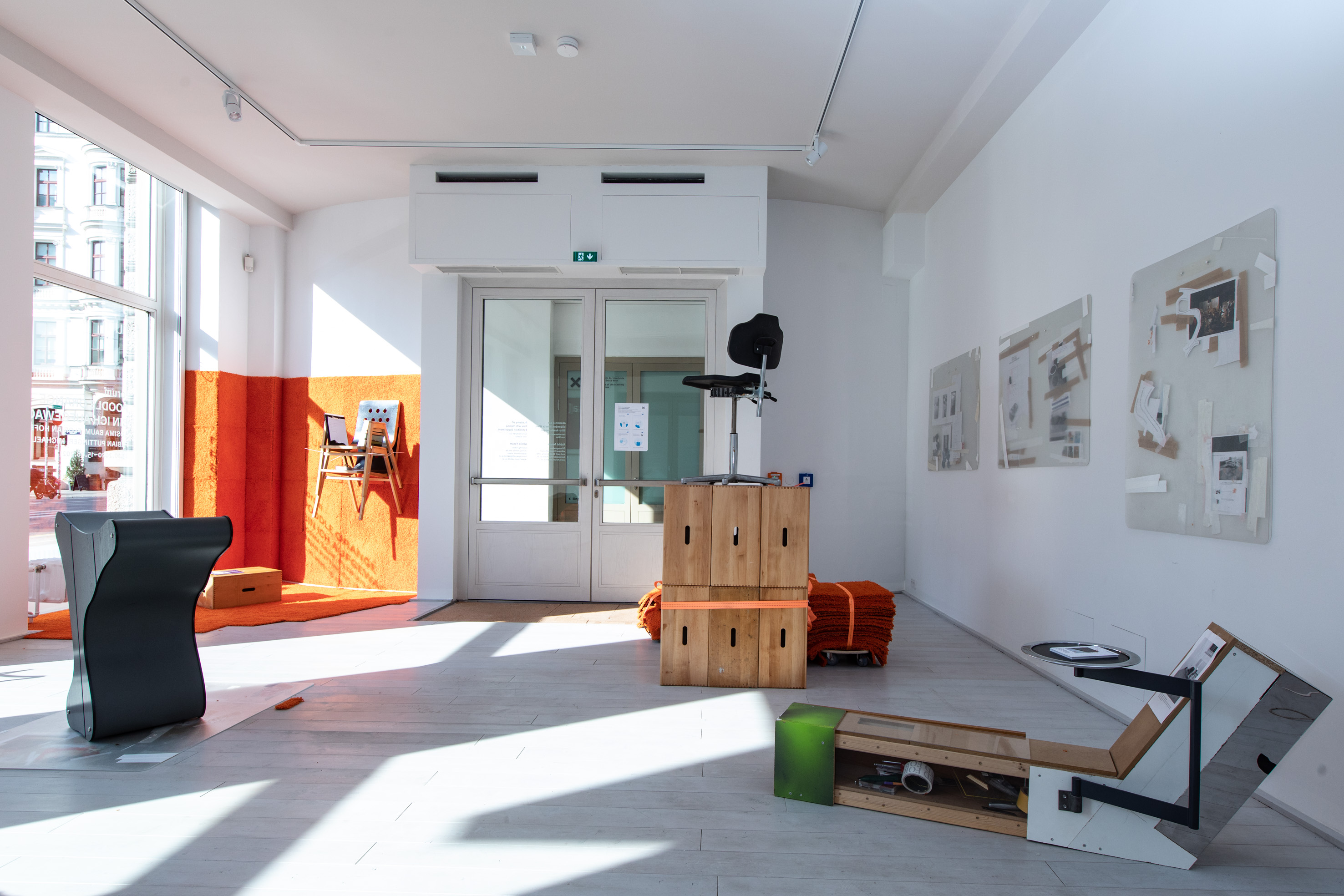 Cosima Baum, Florian Hofer, Fabian Puttinger und Michael Reindel – vier, teils ehemalige, Studierende der Akademie der bildenden Künste Wien – begeben sich im neu eröffnenden Akbild Forum am WIener Getreidemarkt in ihrem Projekt poodle orange bin ich aufgewacht auf die Spur der Sprache von Dingen. In einer intensiven Recherche machten sie sich auf die Suche nach jenen Geschichten, welches Sitzmöbel oder anderes Inventar der Akademie über die Institution selbst erzählen. Seien es Sonderwünsche von Lehrenden, Einzelstücke gefertigt von Studierenden, Funktionsobjekte, Liebhaberstücke, reine Dekorationsobjekte oder Provisorien. Viele dieser Objekte und Sitzgelegenheiten treten nun über die Dauer von rund einem Jahr im Rahmen der künstlerischen Gestaltung des Akbild Forum am Getreidemarkt 12 in wechselnde Konstellationen. Ebenso wie die Collagen, die als Teil der Gesamtgestaltung den Rechercheprozess dokumentieren und assoziativ weiterführen, laden sie die Besucher_innen dazu ein, die Institution der Akademie, prägende Momente ihrer Geschichte und spezifische Charakteristika ihres Selbstverständnisses in der Auseinandersetzung und Nutzung ihrer Inventargegenstände selbst zu erkunden.
