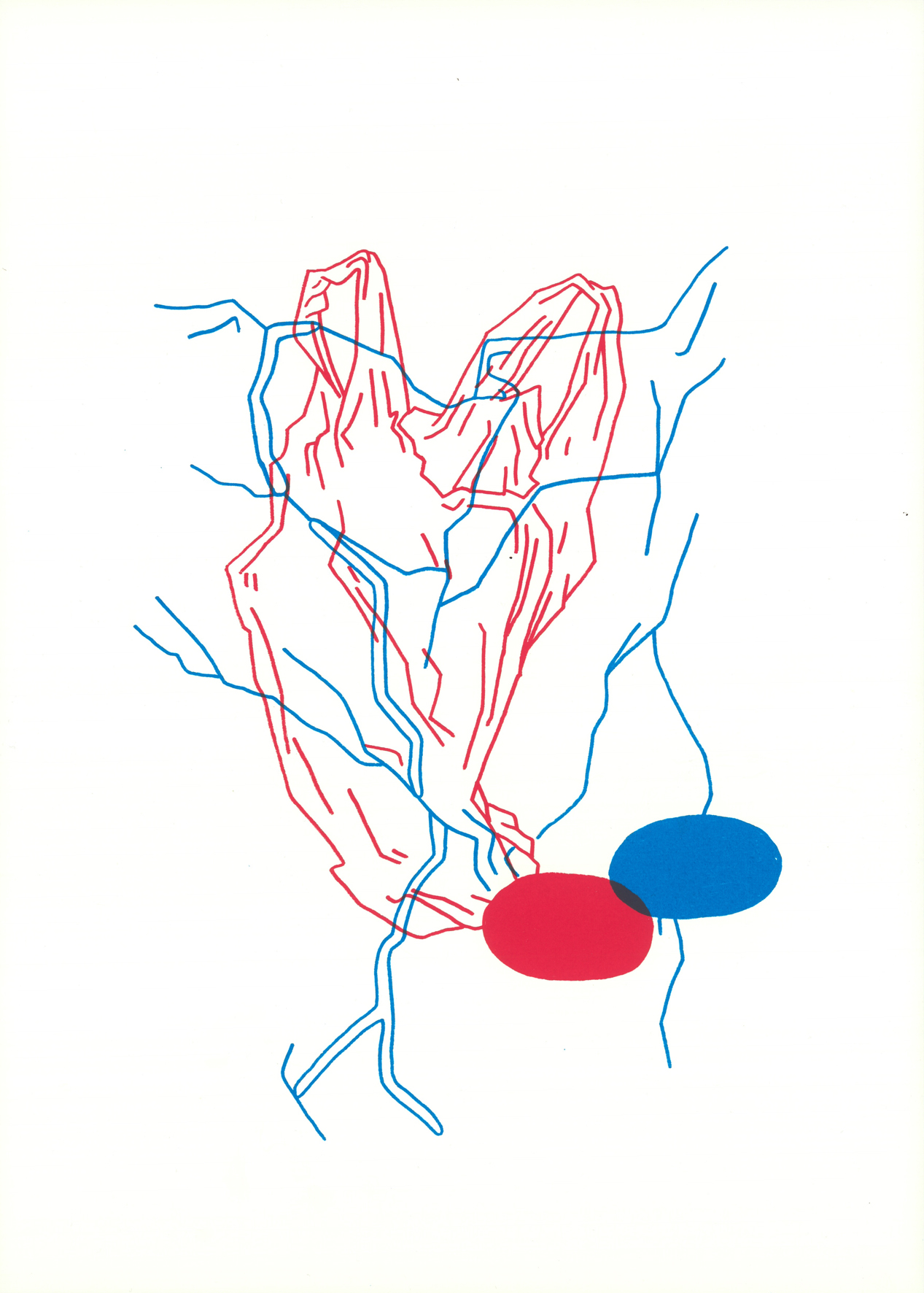 rote und blaue Linien und zwei Kreise, ebenfalls rot und blau