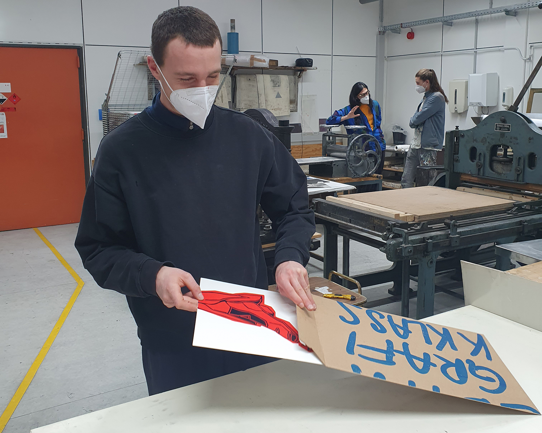 Das Edith 2021, Studierende im Atelier, Foto: Grafikklasse, Akademie der bildenden Künste Wien, 2021