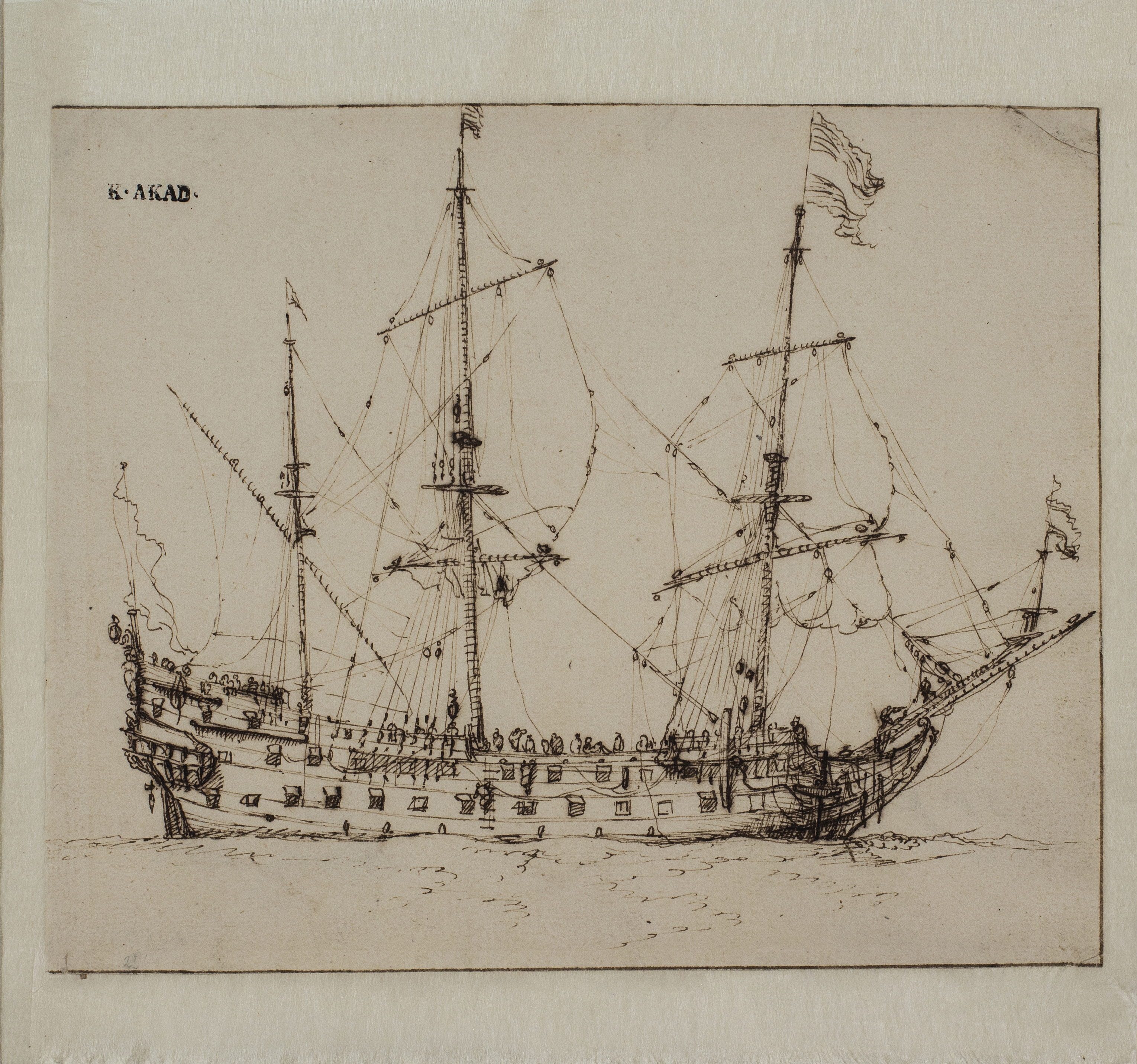 Abraham Storck (1644-1708), Holländisches Kriegsschiff, um 1770-1790, Feder in Eisengallustinte, auf Papier