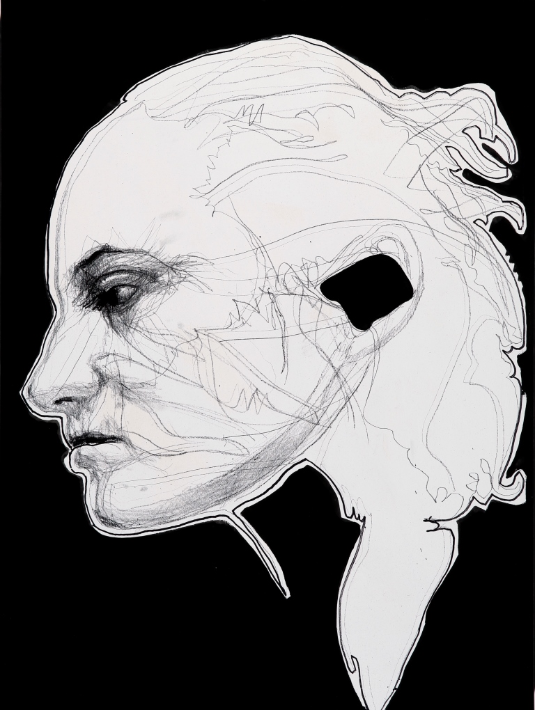 Franz Graf, Face , 2016, Tusche und Graphit auf Holz, 80 x 60 cm