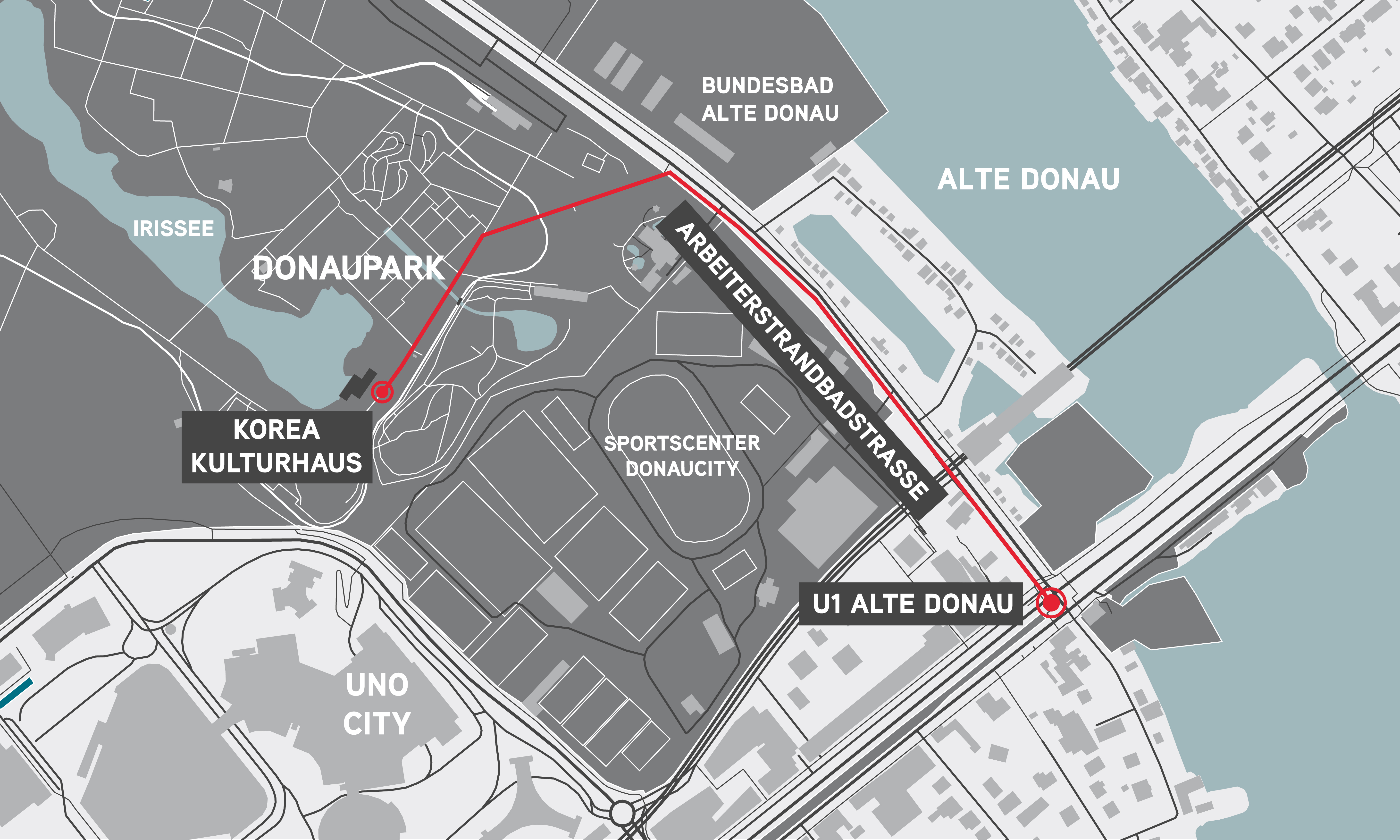Korea Kulturhaus, Donaupark und Irissee, Arbeiterstrandbadstraße 122, 1220 Wien