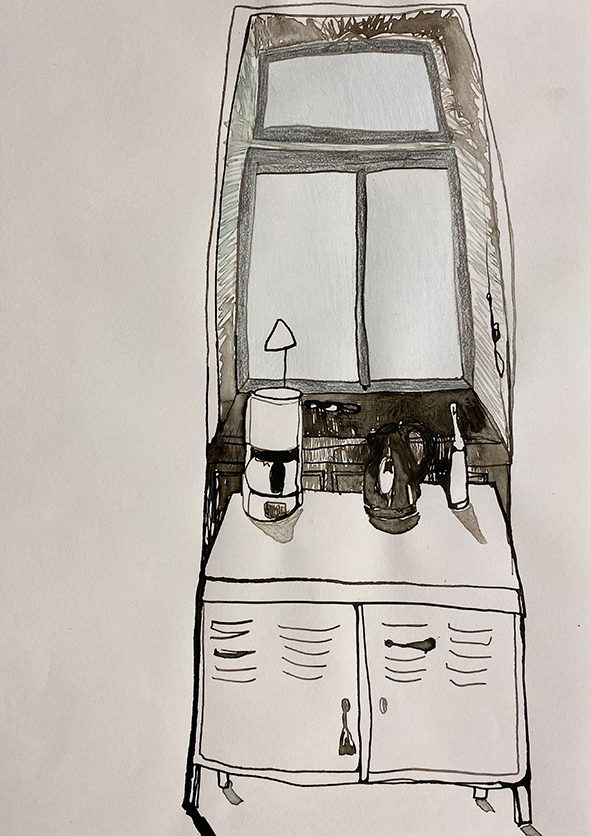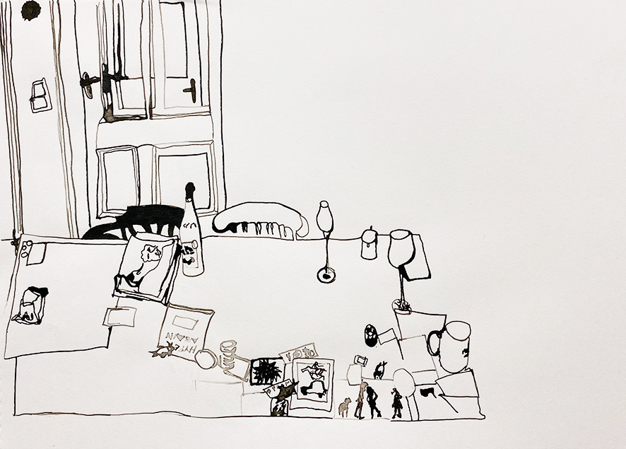 Drawing a room allows to reexperience it and reflect its design. What matters are not the individual objects but the perception of the entire space, which each artist interprets differently.